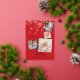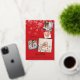 Un elegante Relieve metalizado de oro real 4 foto collage tarjeta de anuncio de nacimiento de vacaciones para personalizar con tus fotos especiales enmarcadas en oro, mensaje de vacaciones, nombres y estadísticas de nacimiento. El reverso presenta copos de nieve cayendo. Puede personalizar del color de fondo para que coincida con el tema de vacaciones. Diseñado por Thisisnotme©