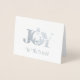 Relieve metalizado plateado real Esta nota nard se muestra en blanco con un Navidad festivo Joy to the World Relieve metalizado print. Personalizar esta tarjeta o compra como se muestra. Imprimir con licencia