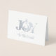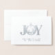 Relieve metalizado plateado real Esta nota nard se muestra en blanco con un Navidad festivo Joy to the World Relieve metalizado print. Personalizar esta tarjeta o compra como se muestra. Imprimir con licencia