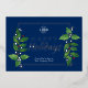 Clásico moderno horizontal feliz vacaciones negocios impresión a ambos lados tarjeta plana de saludo con un lugar para su logo con elegantes hojas de navidades de acuarela clásicas y verdadero Relieve metalizado plateado prensado marco y feliz texto de vacaciones en un fondo azul marino. La tarjeta de felicitación de Navidades perfecta para empresas de negocios, pequeñas empresas, empresas, empleados, empresas de vacaciones o cualquier organización, el diseño moderno dará a sus clientes la impresión de lujo y éxito. La parte trasera tiene una redacción personalizado. Esta plantilla de tarjeta Happy Holidays está lista para tu personalización en línea. El Relieve metalizado plateado se puede cambiar por oro o oro subió.