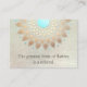 Una carta esencial para las profesiones que creen en el crecimiento de sus negocios por boca a boca. Este exótico ilustracion artístico de flores de loto tiene una elegante fusión de época vintage, moderna y nueva. El medallón de rosette de imitación de la hoja de oro inspirado en Mandala se acentúa perfectamente con el fondo de imagen digital de color beige oscuro del Relieve metalizado. Centro azul turquesa. Tapa de tela de lino fino beige.*Por favor, tenga en cuenta que las superficies de Relieve metalizado dorado, cepillado y lino son imágenes digitales - no lo real. Una tarjeta de visita única y versátil, ideal para los amantes de las artes curativas, los diseñadores, la belleza, la moda o los bienes y servicios de consumo basados en la naturaleza. Una tarjeta de negocios artística y terrenal ideal para aquellos que se dediquen a las artes curativas, paisajes, diseño, belleza, moda o la naturaleza de bienes y servicios de consumo.
