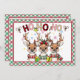 Esta linda tarjeta de Navidades se personaliza con el nombre de su hijo. Hay un mensaje a su hijo de Santa, o usted puede crear su propio mensaje. El divertido diseño de acuarela cuenta con tres renos de Santa que visten sus cálidos pañuelos de invierno y tienen adornos navideños colgando de sus cuernos. Encima de ellas se ve Ho Ho Ho Ho Ho en cartas decoradas con humor. Hay dulces a ambos lados y abundan los copos de nieve. Tu hijo estará tan emocionado de conseguir una tarjeta de Navidad de Santa Claus.