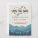 Anuncia tu boda en la montaña con esta tarjeta de reserva con un diseño inspirado en un retiro escénico. Perfecta para bodas al aire libre, de aventura o de destino en las montañas. Totalmente personalizable con tus nombres y detalles de la boda.