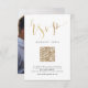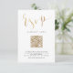 Guión RSVP con letras de mano en color Relieve metalizado de oro falso, elegante y elegante, gran diseño sencillo, boda personalizado, tarjetas RSVP de código QR. Vea todas las piezas coincidentes de la colección.