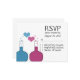 Tan divertido y nerd es esta Tarjeta de Respuesta de la Ciencia del Amor Boda que incluye un par de zapatillas, una de azul y la otra de fucsia, con bonitas burbujas de corazón. Este diseño peculiar y original es perfecto para esa pareja de nerds que quiere algo memorable que coincida con sus peculiares personalidades. Fácil de personalizar, simplemente añada los detalles de su día de boda en los espacios proporcionados. Haga clic en el botón "Personalizar" para encontrar opciones de personalización adicionales.