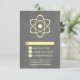 Tarjeta de respuesta Boda de tablero atómico de color dulce y nerd con un sencillo símbolo atómico de color amarillo en el fondo de un diseño de pizarra. ¡Esta tarjeta RSVP de bodas geek y divertida es perfecta para la pareja de entusiastas de la ciencia! Fácil de personalizar, simplemente añada los detalles de su boda en los espacios proporcionados. Haga clic en "Personalizar" para encontrar más opciones de personalización.