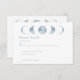 Completa tu suite de boda celestial con nuestra tarjeta de respuesta de boda de la Colección Azul Celestial de Fases Lunares Minimalistas. Este diseño presenta una estética simple, minimalista y nítida, con un fondo blanco limpio que permite que los elementos celestes resalten. Centradas en la parte superior de la tarjeta están las cinco fases de la luna mostradas en un hermoso color azul claro, agregando un toque de belleza celestial al diseño.