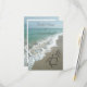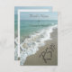 Tarjeta de respuesta para combinar con cualquiera de nuestras invitaciones de boda en la playa con escritura en arena, hermoso fondo de escena oceánica con agua turquesa, olas blancas que rompen y arena, con frases románticas escritas en la arena. Personalice en línea con su información. También disponible con otros textos, incluyendo Gracias, Reserve la fecha, Responder, y Está invitado.