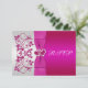 Esta tarjeta de respuesta con patrón floral rosa caliente y gris plateado romántico tiene una cinta con la leyenda "PRINTED ON" con un par de joyas de diamante "PRINTED" y corazones unidos con brillo FAUX que coinciden con la invitación de boda que se muestra a continuación. Se muestra aquí en papel básico, pero brillaría de manera extra especialmente en papel de hielo metálico, que tiene un sutil brillo opalescente. El papel de fieltro es un papel texturizado grueso y embossado que también daría resultados lujosos. El lino enfriará el diseño y es un papel ligero con líneas delgadas que cruzan que puede que no te guste. TAMBIÉN, si cambias las fuentes o tamaños de fuente, es posible que tu texto ya no quepa correctamente. Zazzle no editará nada por errores tipográficos, alineación o cualquier otra cosa, y yo no veré tu invitación. Todo se imprimirá tal como aparece en tu monitor. Si necesitas ayuda con la invitación, por favor contáctame ANTES de pedirla. Esta invitación está diseñada para ajustarse a la tarjeta de tamaño 3.5x5. Si cambias a otro tamaño, el diseño ya no se ajustará correctamente, así que si deseas un tamaño diferente, por favor contáctame para que pueda