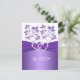 Esta tarjeta de respuesta floral de color lavanda púrpura y blanco tiene una cinta IMPRIMIR y un par de joyas de diamante IMPRIMIR y un broche de corazones unidos con brillo que coincide con la invitación de boda que se muestra a continuación. ***Tenga en cuenta que no hay elementos en relieve en esta invitación. Todo está impreso plano. No usaría ninguno de los papeles de colores (champán metálico, dorado, plateado, fieltro, moteado) ya que TODOS cambiarán de color la invitación y los diamantes impresos no se verán blancos. El papel de lino añadirá una textura de líneas finas que quizás no desee. Los papeles básicos o reciclados son una alternativa más barata si tiene un presupuesto más ajustado. ***Tenga en cuenta que si cambia la fuente o el tamaño de la fuente, puede alterar la forma en que se imprime su tarjeta. Se imprimirá tal como lo ve en su monitor, así que si tiene problemas de alineación o problemas de tamaño, por favor contácteme para obtener ayuda. No veré su tarjeta una vez que la ordene, y Zazzle NO editará nada (errores tipográficos, alineación, etc.).