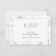 Una tarjeta de respuesta limpia y moderna con un suave efecto de textura de mármol gris con "RSVP" en elegante letra cursiva gris sobre un fondo blanco crujiente. Campos simples y fáciles de leer proporcionan espacio para detalles de contacto, nombres, dirección y cualquier información adicional para coincidir con la papelería de la boda. El texto, los nombres y la fecha se pueden personalizar completamente para adaptarse a cualquier temporada.