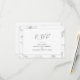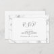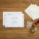 Una tarjeta de respuesta limpia y moderna con un suave efecto de textura de mármol gris con "RSVP" en elegante letra cursiva gris sobre un fondo blanco crujiente. Campos simples y fáciles de leer proporcionan espacio para detalles de contacto, nombres, dirección y cualquier información adicional para coincidir con la papelería de la boda. El texto, los nombres y la fecha pueden ser personalizados completamente para adaptarse a cualquier temporada.