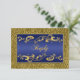 Esta elegante tarjeta de respuesta con pergaminos dorados y azul real coincide con la invitación de aniversario de bodas número cuarenta que se muestra a continuación. ****POR FAVOR TOME NOTA de que el papel dorado es un dorado muy oscuro y broncíneo y alterará severamente los colores del diseño, por lo que NO sugiero usar ese papel. Se muestra aquí en papel básico, pero brillaría muy bien en papel metálico hielo, que tiene un sutil brillo opalescente. El papel metálico champán también sería bastante agradable. El papel de fieltro es un papel grueso y texturizado con relieve que también daría resultados lujosos. El lino enfriará el diseño y es un papel ligero con líneas delgadas que lo atraviesan que puede que no te guste. TAMBIÉN, si cambias las fuentes o tamaños de fuente, es posible que tu texto ya no quepa correctamente. Zazzle no editará nada por errores tipográficos, alineación o cualquier otra cosa, y yo no veré tu invitación. Todo se imprimirá tal como aparece en tu monitor. Si necesitas ayuda con la invitación, por favor contáctame ANTES de hacer el pedido. Esta invitación está diseñada para ajustarse a la tarjeta de tamaño 3.5x5. Si cambias a otro tamaño, el diseño ya no se ajustará correctamente, así que si deseas un tamaño diferente, por favor contáctame para que pueda rediseñarlo