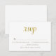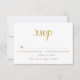 Esta bonita tarjeta de respuesta en dorado y blanco es perfecta para aniversarios de oro. La tarjeta de respuesta presenta caligrafía dorada que dice "rsvp" y texto editable debajo.