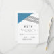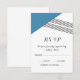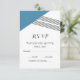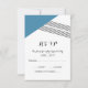 Tarjeta RSVP de matrimonio geométrica moderna y de moda con triángulo azul y acento de rayas finas. Esta tarjeta de respuesta simple y elegante se configura para que sea fácilmente personalizada con la información de su boda. Para obtener más opciones de personalización, haga clic en Personalizar.