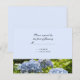 Las hortensias azules bonitos con hojas verdes crudas acentúan esta carta de respuesta.