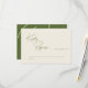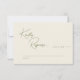 Esta elegante tarjeta de respuesta RSVP presenta un diseño minimalista con tonos suaves de marfil y verde terroso, acentuados por caligrafía elegante y tipografía limpia. Perfecta para bodas, aniversarios o eventos especiales, combina simplicidad atemporal con sofisticación refinada.