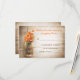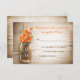 Hermosa tarjeta de respuesta de boda rústica - tarjetas de respuesta de boda con fondo de madera desgastada y frasco de Mason con flores de color naranja. Sugiero un hermoso papel con textura de lino para este diseño.