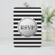 Tarjeta de respuesta de boda con franja negra y blanca con hoja de plata. Artículos coincidentes disponibles.