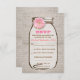 Tarjetas de respuesta de boda country rústicas y bonitas con una ilustración de un tarro de mason y un acento de gerbera rosa. El fondo de arpillera es un diseño impreso en el papel, no tela de arpillera real. Por favor, contácteme si necesita ayuda con la personalización o tiene una solicitud de color personalizado.