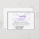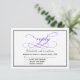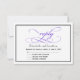 Sofisticada y elegante, esta tarjeta de respuesta de RSVP de boda con guión moderno morado, negro y blanco coordina con nuestra suite de boda de fe, esperanza y amor con guión formal morado de invitaciones y accesorios cristianos contemporáneos diseñada por Natalie Schorr para Graphic Suite en Zazzle.