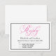 Sofisticada y elegante, esta tarjeta de respuesta de boda con letra de caligrafía manuscrita vintage moderna rosa, negra y blanca coordina con nuestro conjunto de invitaciones y accesorios de boda cristianos contemporáneos Faith Hope and Love en rosa y blanco de Graphic Suite en Zazzle. Diseñado por Natalie Schorr.
