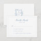 Tarjeta de respuesta de boda con monograma de cresta floral en polvo azul formal y elegante.