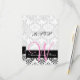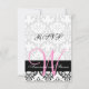 Monograma rosa en patrón de damasco único en negro y blanco, tarjeta de respuesta de RSVP de boda personalizable. Tarjeta de respuesta de invitación de boda con monograma rosa de damasco bonita. Diseño de Elke Clarke para Monogram Gallery. Personalice con su monograma, nombres y texto de RSVP de boda. Para más opciones de edición, use "personalizar" para cambiar el espaciado del texto y los colores. O contacte con luxuryweddinginvitations@gmail.com para obtener ayuda. Gráficos con licencia para su uso.