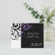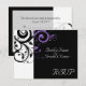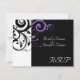 Tarjeta de respuesta para combinar con nuestra invitación de boda de remolino inverso púrpura negro y blanco, con un fondo gráfico en negrita de hoja de pergamino con remolino. Personalice en línea con los detalles de su boda.