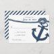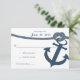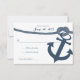 Anclaje y diseño de cuerda rsvp tarjeta azul marino y blanco, diseño boda, perfecto para una playa de destino o boda de cruceros.
