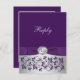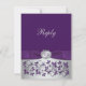 Esta elegante y moderna tarjeta de respuesta de boda con patrón floral y enrollado de color púrpura y gris plateado tiene una cinta IMPRIMIR con un medallón de botón grabado falso plateado enrollado y ornado IMPRIMIR que coincide con la invitación de boda que se muestra a continuación. Todo el texto y la elección del papel son personalizables. ***POR FAVOR TOME NOTA de que no hay elementos en relieve en esta invitación. Todo se imprime plano. ***POR FAVOR TOME NOTA de que si cambia la fuente o el tamaño de la fuente, puede alterar la forma en que se imprime su tarjeta. Se imprimirá tal como lo ve en su monitor, así que si tiene problemas de alineación o problemas de tamaño, por favor contácteme para obtener ayuda. No veré su tarjeta una vez que la ordene, y Zazzle NO editará nada (errores tipográficos, alineación, etc.). Si necesita ayuda con las selecciones del menú