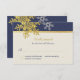 Puedes personalizar fácilmente el texto en esta tarjeta de respuesta de RSVP de boda de invierno con copos de nieve en azul marino, dorado y marfil o champán. Para cambiar el texto, use las opciones de personalización. O, para cambios de texto más extensos, incluidos cambios en la fuente, el color de la fuente, el tamaño de la fuente y/o la ubicación del texto, use la opción personalizar. Cambie el texto y use esto para una tarjeta de inserción de información de recepción, dirección, alojamiento y/o información general de la boda. El diseño tiene un estilo muy moderno con formas audaces y colores elegantes.