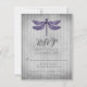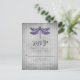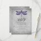 Envía a tus invitados una tarjeta de respuesta de libélula con joyas simple y elegante con tu invitación. El diseño de la tarjeta de respuesta presenta una libélula enjoyada vibrante contra un fondo a rayas desgastado vintage. Personaliza con la fecha de respuesta y las opciones de menú. También está disponible papelería de boda adicional con este diseño.
