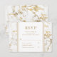 Tarjeta de respuesta de boda de mármol dorado elegante