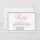 Sofisticada y elegante, esta tarjeta de respuesta RSVP de boda en escritura rosa, negra y blanca coordina con nuestro conjunto de invitaciones y accesorios de boda de fe, esperanza y amor rosa y blanco de la suite de bodas cristianas contemporáneas. Diseñado por Natalie Schorr para Graphic Suite en Zazzle.