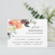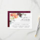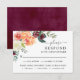 Completa tu suite con esta tarjeta de respuesta de boda coordinada que presenta una esquina floral de acuarela en tonos de borgoña, rubor y cálidos tonos de otoño. Incluye espacio para nombres, respuesta de asistencia y una sección fácil de selección de comida. Un diseño limpio y moderno mantiene todo legible mientras coincide con un tema de boda floral de otoño romántico.