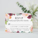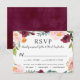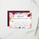 Completa tu suite con esta tarjeta de respuesta de boda coordinada que presenta un exuberante borde floral de acuarela en borgoña, rubor y vegetación. Incluye espacio para los nombres de los invitados, respuesta de asistencia y una sección fácil de selección de comida. Romántico y legible para celebraciones de boda de otoño, jardín y viñedo.