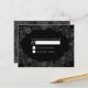 Nuestras tarjetas de respuesta RSVP para la invitación a la boda gótica floral en blanco y negro se hacen para que coincidan con la Colección de Bodas Gótico-Negro Rosa. El contraste negro oscuro y blanco brillante con los motivos florales oscuros. El tipo de letra del guión combinado con el tipo de letra serif, le da un aspecto artístico que coincide con el estilo gótico.