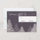 Tarjetas de respuesta de boda de invierno modernas grises y blancas con árboles de hoja perenne. Personalice con su información de texto y de boda.