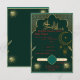 Completa tu suite de papelería de boda islámica con esta elegante tarjeta de respuesta verde y dorada. Con un lujoso fondo esmeralda y un intrincado detalle arabesco dorado, esta tarjeta de respuesta complementa maravillosamente tu conjunto de invitaciones para Nikah o Walima.