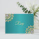 Elegantes y modernas tarjetas de respuesta de boda con diseño de flor Mandala en oro y diamantes. El color de fondo se puede cambiar. Parte trasera con falso foil dorado. Plantillas editables: agregue su texto. Contacte al diseñador para otras variaciones.