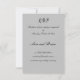 Diseñado con una estética minimalista en tonos de negro y gris, esta tarjeta de respuesta de boda ofrece un toque pulido y elegante para su día especial. La paleta de colores simple pero llamativa se adapta tanto a estilos de boda tradicionales como modernos. Con mucho espacio para los detalles de RSVP, esta tarjeta logra un equilibrio perfecto entre forma y función. Personalice el diseño para que coincida con la visión de su boda y brinde a sus invitados una experiencia inolvidable.