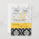 Tarjeta de RSVP para invitaciones de boda con elegante Damask, monograma y escritura y Yellow.com y WhiteWhimsicalWeddings.blogspot.com. Personalice con su monograma, nombres e información de RSVP. Además, elija entre una variedad de fuentes y papeles hermosos para hacer que las tarjetas de respuesta de su invitación de boda sean ¡FABULOSAS! Diseño de Elke Clarke ©2011. Gráficos licenciados para uso comercial