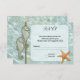 Invitación de respuesta de boda con tema náutico o de playa o tarjeta de inclusión con dos caballitos de mar en un fondo de agua con una estrella de mar. Esta tarjeta coincide con varias invitaciones de boda y novia.