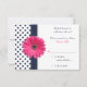 Puedes personalizar el texto en esta tarjeta de respuesta RSVP de boda con margarita gerbera rosa con lunares blancos y azules (o azul marino). Para cambiar el texto en este diseño de margarita gerbera, usa las opciones de personalización. O, para cambios más extensos, incluyendo cambiar la fuente, el color de la fuente, el tamaño de la fuente o la ubicación del texto, usa la opción de personalizar. Con cambios en el texto, esta tarjeta podría usarse como una tarjeta de inserción de información de recepción, dirección, alojamiento y/o información general de la boda. Un diseño divertido y alegre para una boda en varias estaciones.