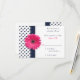 Puedes personalizar el texto en esta tarjeta de respuesta RSVP de boda con gerbera de color rosa con lunares blancos y azules (o azul marino). Para cambiar el texto en este diseño de gerbera, utiliza las opciones de personalización. O, para cambios más extensos, incluyendo cambiar la fuente, el color de la fuente, el tamaño de la fuente o la ubicación del texto, utiliza la opción de personalizar. Con cambios en el texto, esta tarjeta podría utilizarse como tarjeta de inserción de información de recepción, dirección, alojamiento y/o información general de la boda. Diseño divertido y alegre para una boda en diversas estaciones del año.
