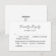 Nuestra tarjeta de respuesta para la boda es la adición perfecta para el conjunto de invitaciones de boda contemporáneas. Con su diseño elegante y simplicidad, esta tarjeta seguramente dejará una impresión duradera en sus invitados. Con las palabras "Respuesta amable" delicadamente escritas en una elegante letra, estas tarjetas de respuesta transmiten un sentido de sofisticación y gusto refinado. Sus invitados estarán encantados con la tipografía romántica y apreciarán el toque moderno que aporta a la papelería de su boda. Para asegurarse de que todos estén atendidos, nuestras tarjetas de respuesta también proporcionan espacio para opciones de menú. Esta considerada adición permite a sus invitados especificar sus preferencias de comida, lo que facilita la planificación de una deliciosa experiencia culinaria en su día especial. No solo estas tarjetas de respuesta de boda emanan encanto y elegancia, sino que también ofrecen practicidad y eficiencia en la gestión de su lista de invitados. Al proporcionar un sobre de devolución con dirección preimpresa, sus invitados no tendrán problemas para enviar sus respuestas con prontitud. Haga que la preparación de su boda sea un proceso fácil y agregue ese toque de modernidad a su día especial. Ordene sus tarjetas de respuesta hoy y impresione a sus invitados con su impecable gusto.