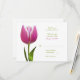 El color del texto y del fondo en esta tarjeta de respuesta o RSVP de boda de tulipán rosa magenta es totalmente personalizable. Puede cambiar el texto utilizando la opción de personalizar. Para realizar cambios más extensos en la tarjeta, incluyendo cambiar el color de fondo, la fuente, el color de la fuente o la disposición del texto, elija la opción de personalizar. Esta es una excelente tarjeta de respuesta para una boda de primavera, verano u otoño con un tema de tulipanes. Simple, bonita y alegre. Esta invitación está actualmente personalizada como una tarjeta de respuesta de boda, pero también funcionaría muy bien como una invitación para una ducha de novia, cumpleaños especial, aniversario o fiesta de jardín. Todo lo que necesita hacer es cambiar la redacción. Además, con cambios en el texto, puede hacer de esta una tarjeta de recepción, dirección y/o alojamiento. Echa un vistazo a la invitación