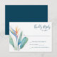 La tarjeta de respuesta de boda chic tropical presenta un borde lateral de flores de acuarela con exuberante follaje botánico y vegetación. Personalice con los detalles de su rsvp en letra manuscrita moderna y letra sans serif tradicional. Tarjeta de respuesta inversa a rico color verde azul marino. Perfecto para bodas de jardín, verano, destino o playa. Para ver más diseños como este visite www.zazzle.com/vginvites