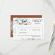 Esta boda respuesta al evento RSVP tarjeta de gabinete con código QR cuenta con un elegante estilo minimalista moderno con arreglos de hojas de follaje de color agua verde y hermosas caligrafías y fuentes tipográficas limpias y serif sobre un fondo de terracota. La sencillez y el diseño limpio de esta tarjeta de gabinete de respuesta RSVP de boda funciona bien con todos los temas bodas y definitivamente una gran incorporación a su boda. Sólo personalizar los nombres de la pareja, fecha, sitio web boda, código QR, y otra información en unos pocos pasos fáciles y personaliza para darle un agradable toque personal. Por favor, tenga en cuenta: la elegante y bella tipografía de frases de "responder amablemente" junto con las disposiciones de hojas de eucalipto de color verde acuático y otros elementos de arte gráfico como las líneas y cajas rectangulares no pueden editarse, cambiarse, moverse ni eliminarse. Están arreglados.